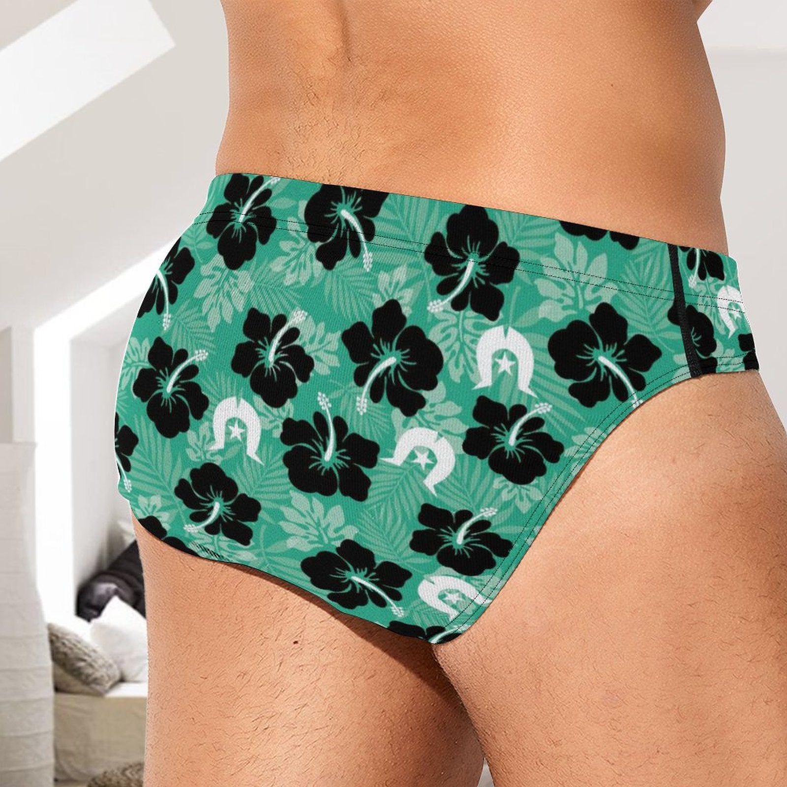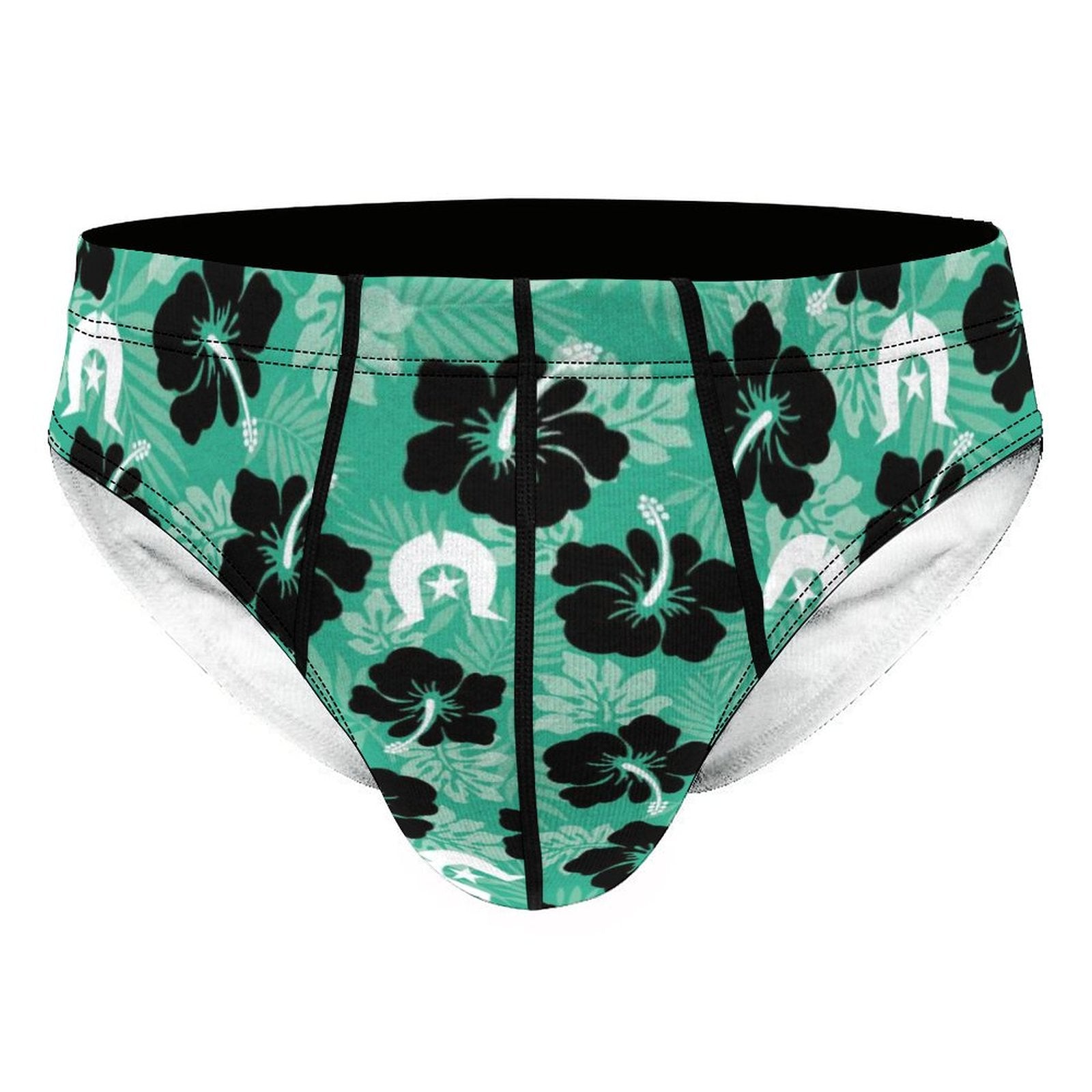 Black Hibiscus with White Dhari on Milk Silk Men's Briefs
