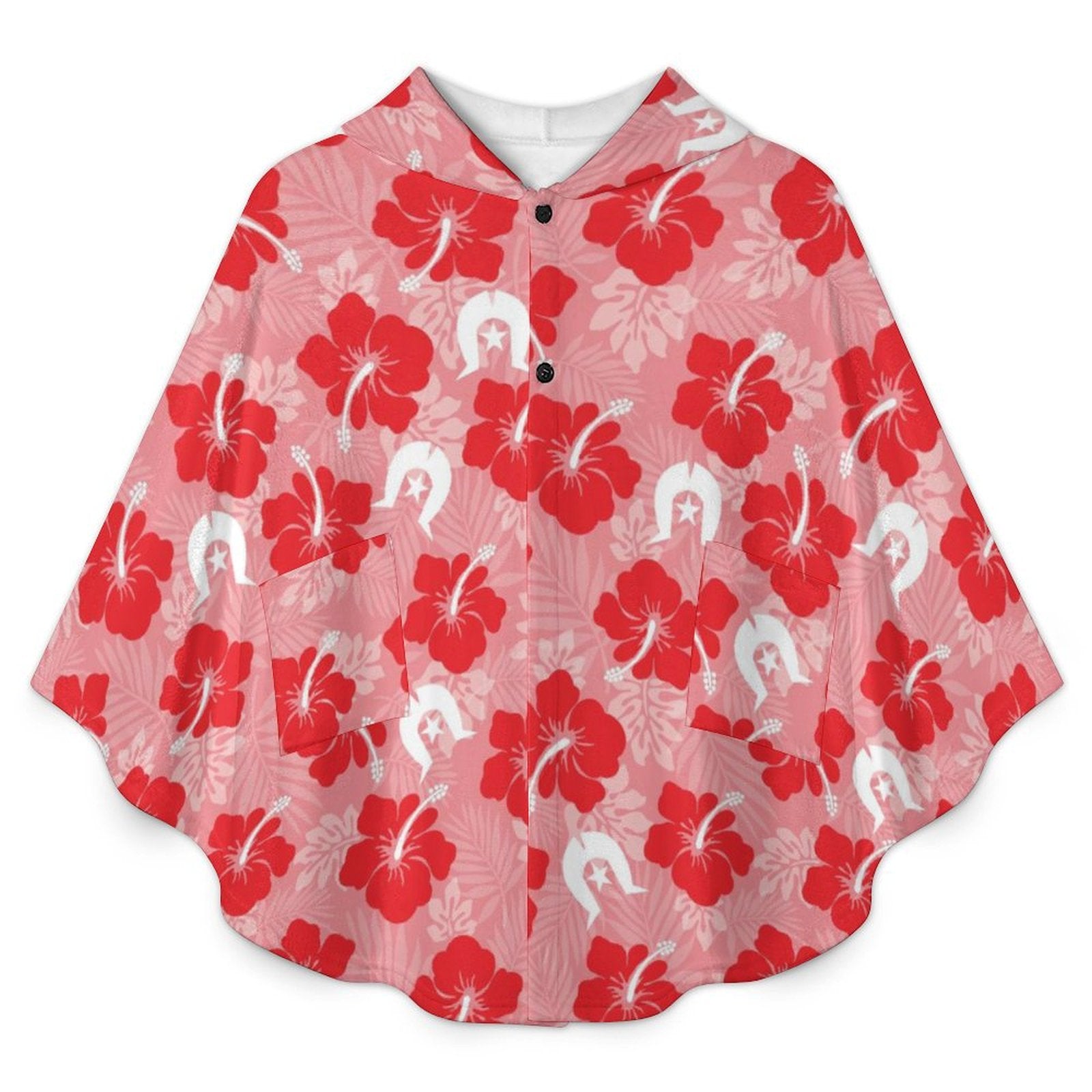 Hibiscus flowers with Dhari (Royal Pink) on Fleece Hooded Cape for Adults
