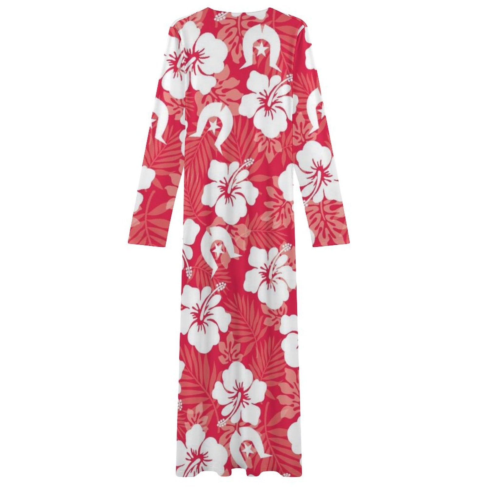 White Hibiscus flowers with Dhari (Red) on Long-Sleeve Draped Bodycon Dress