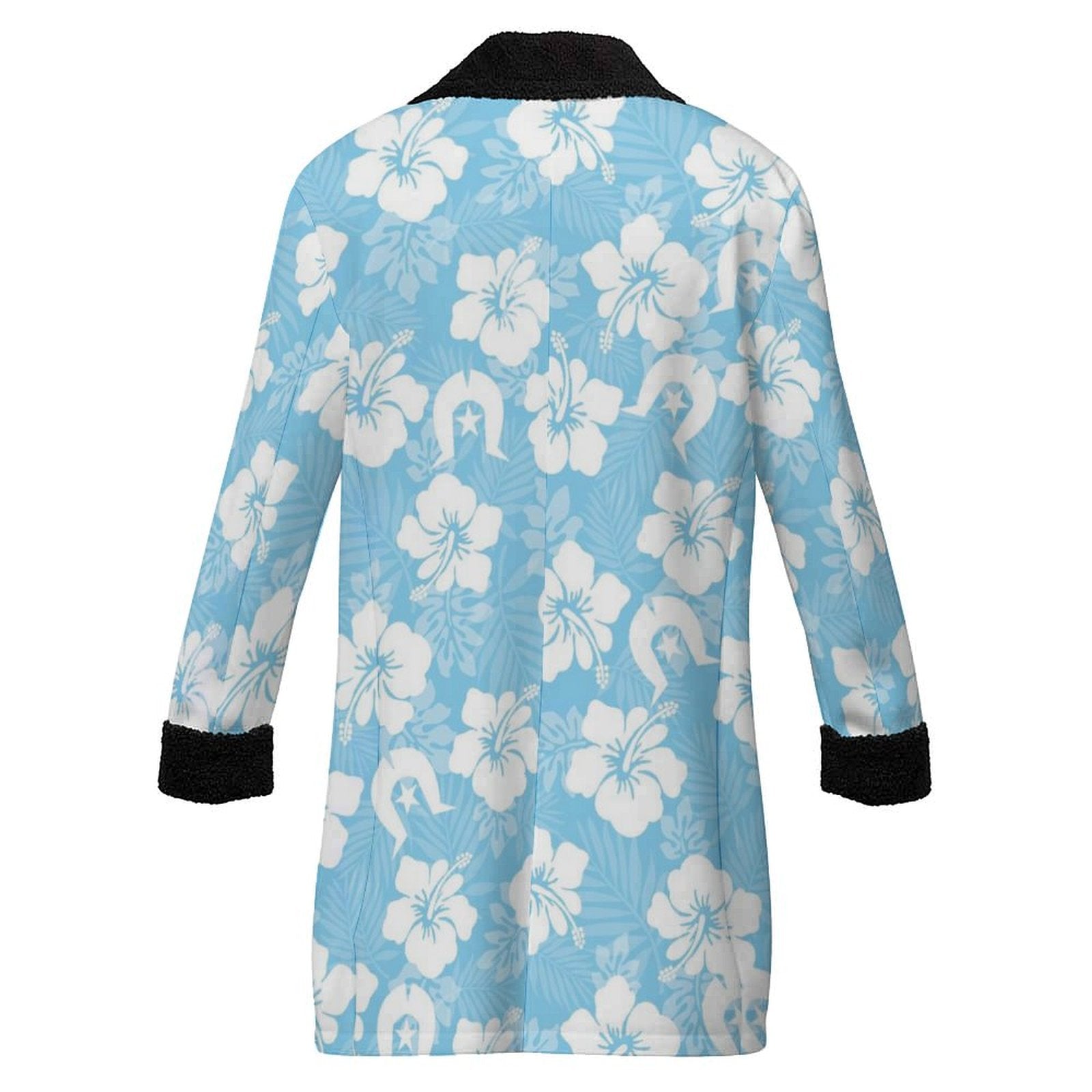 White Hibiscus and Dhari (blue) on Men's Double Breasted Coat