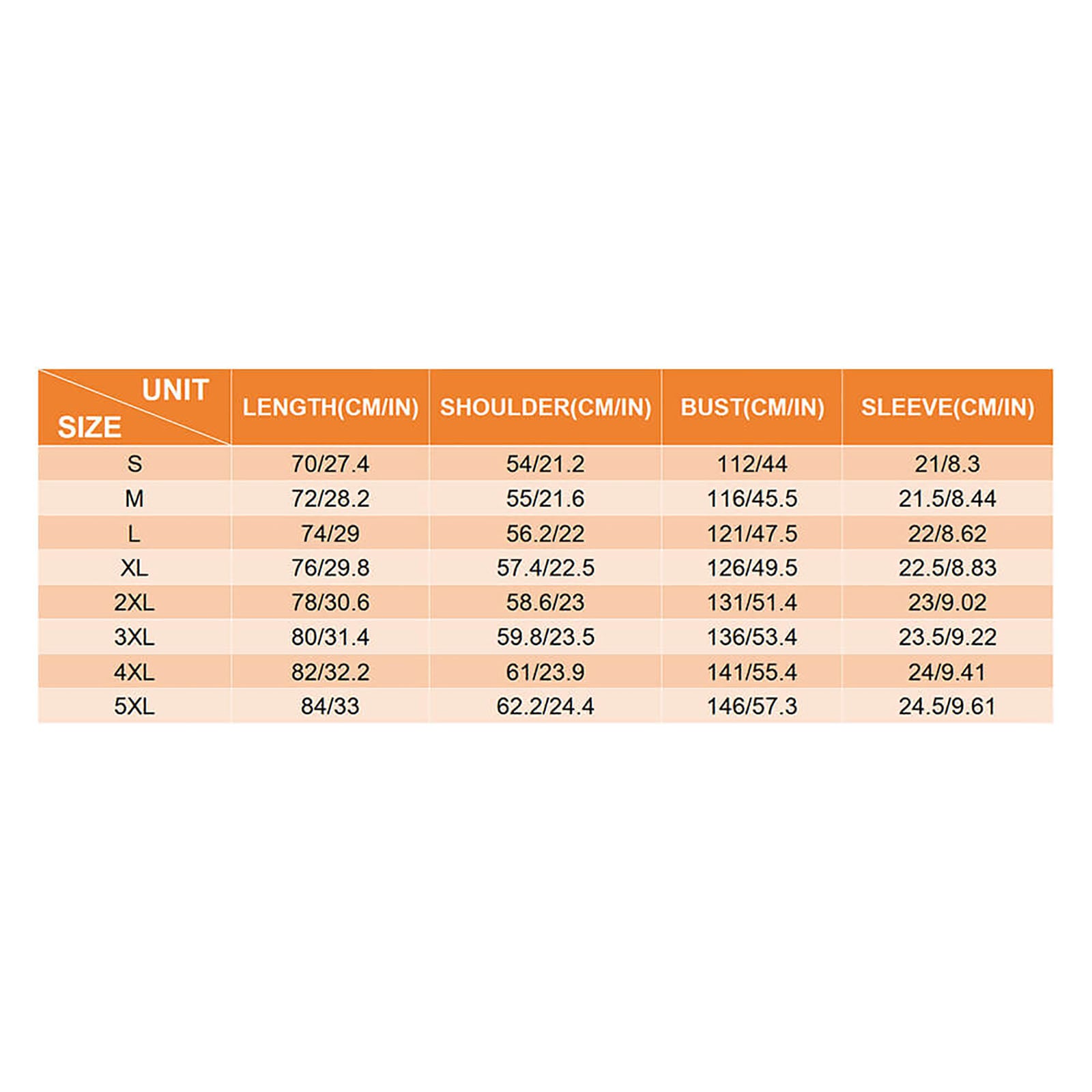 - Sizes: S, M, L, XL,2XL, 3XL, 4XL, 5XL. Calculate your size from the measurement chart below please.