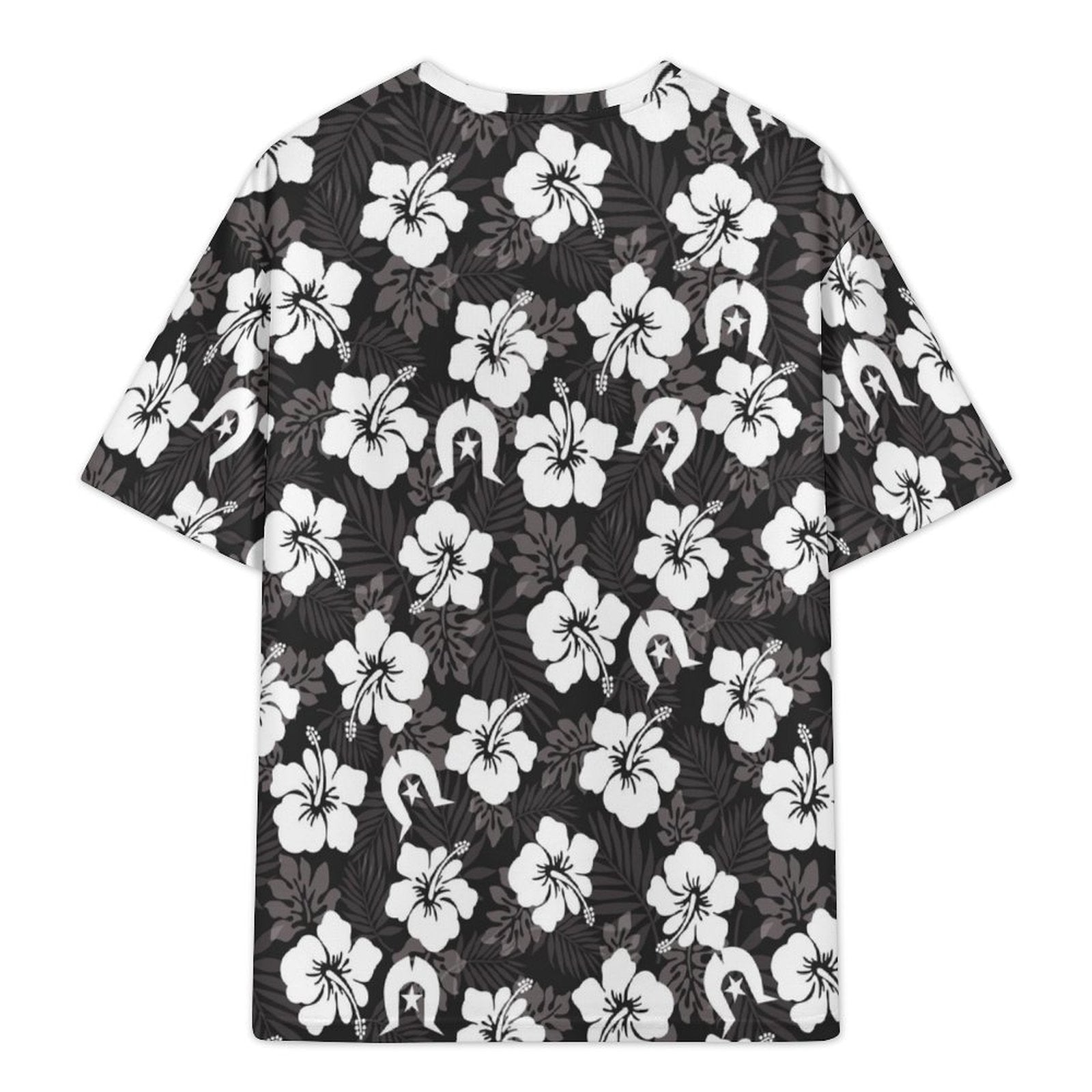 White Hibiscus and Dhari (Black) on Plus Size Drop Shoulder T-Shirt