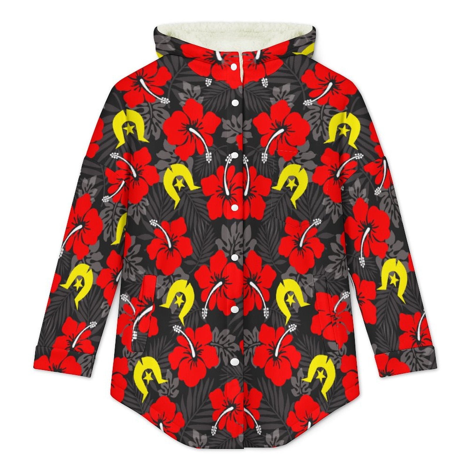Royal Red Hibiscus with Yellow Dhari on Women's Full Snap Fleece Jacket
