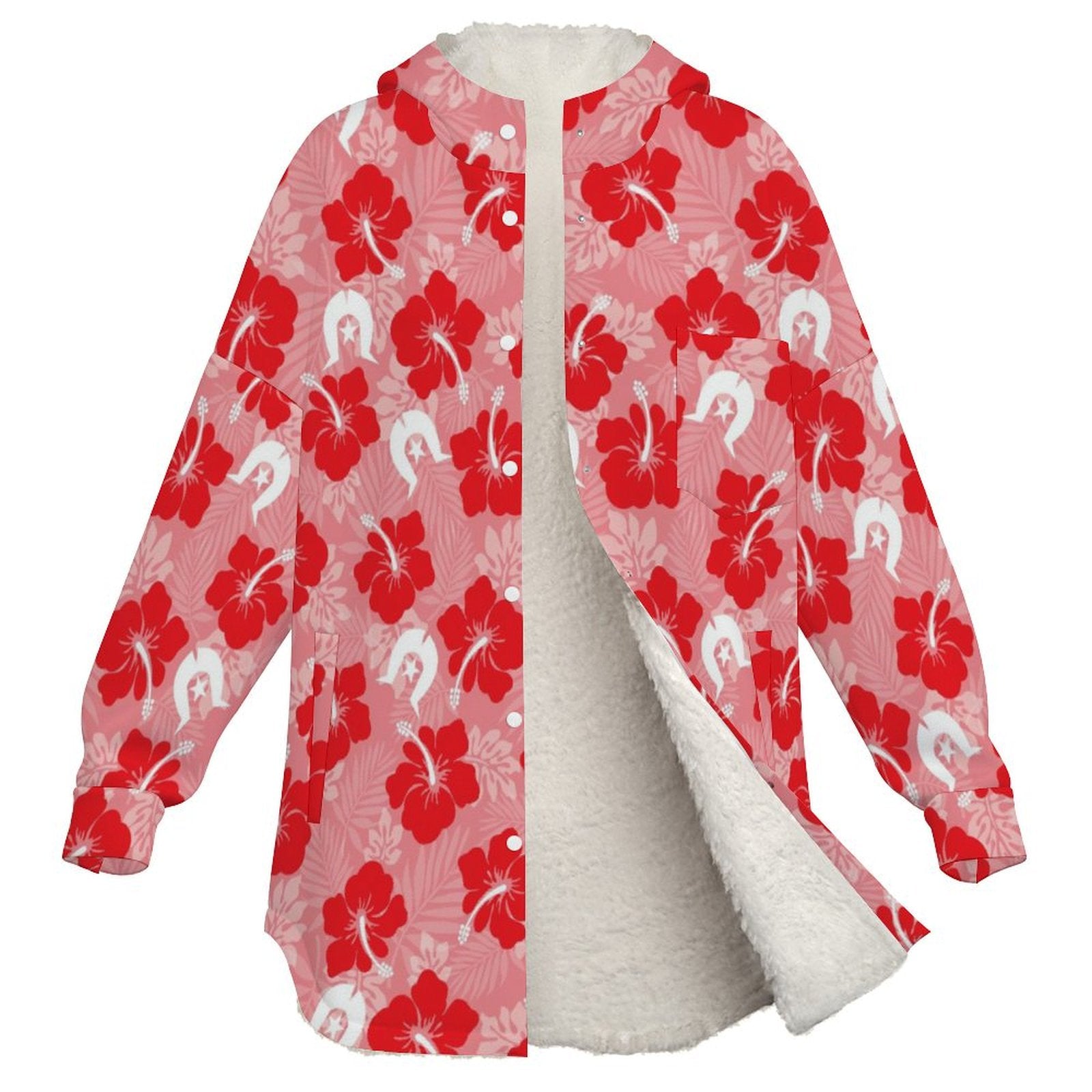 Hibiscus flowers with Dhari (Royal Pink) on Women's Full Snap Fleece Jacket