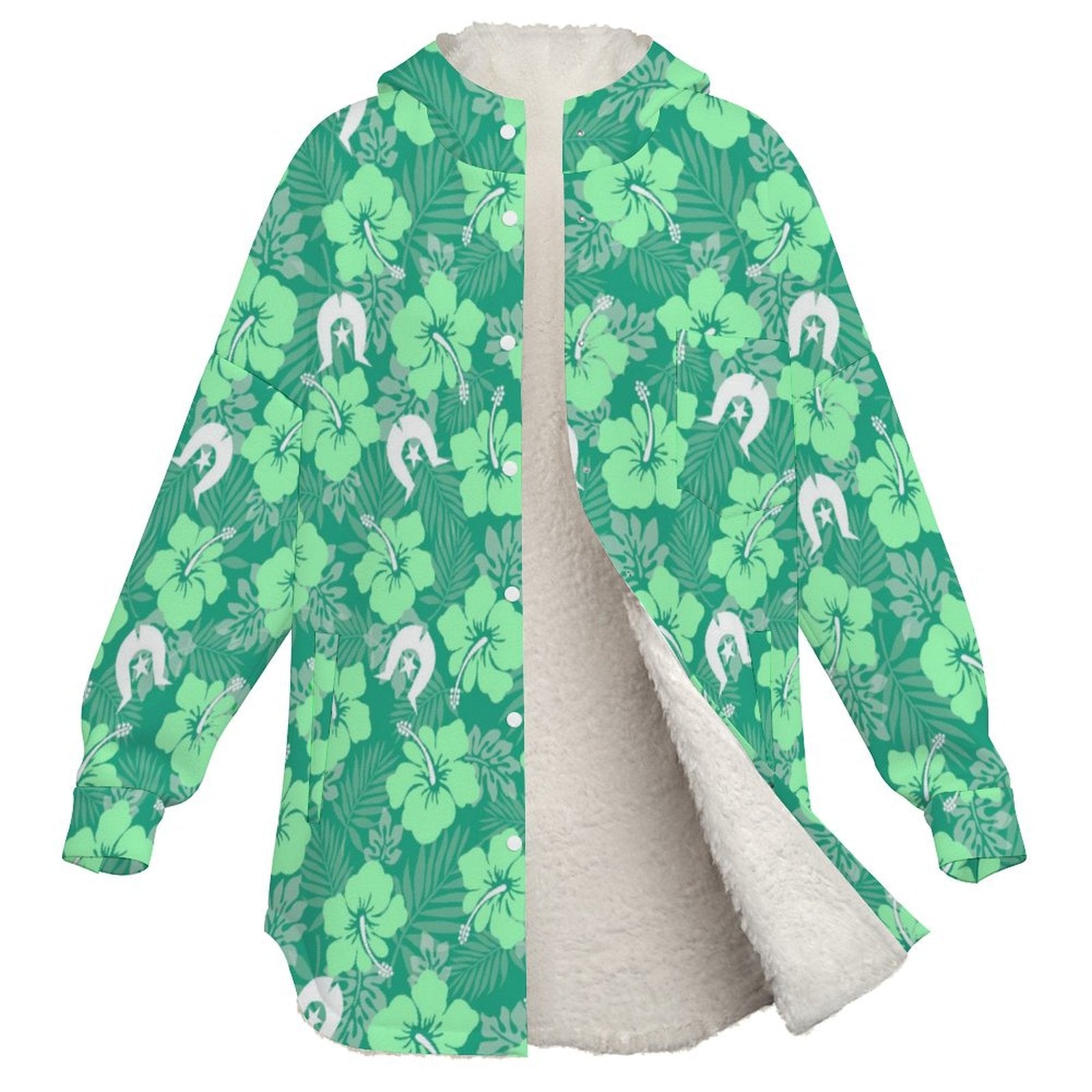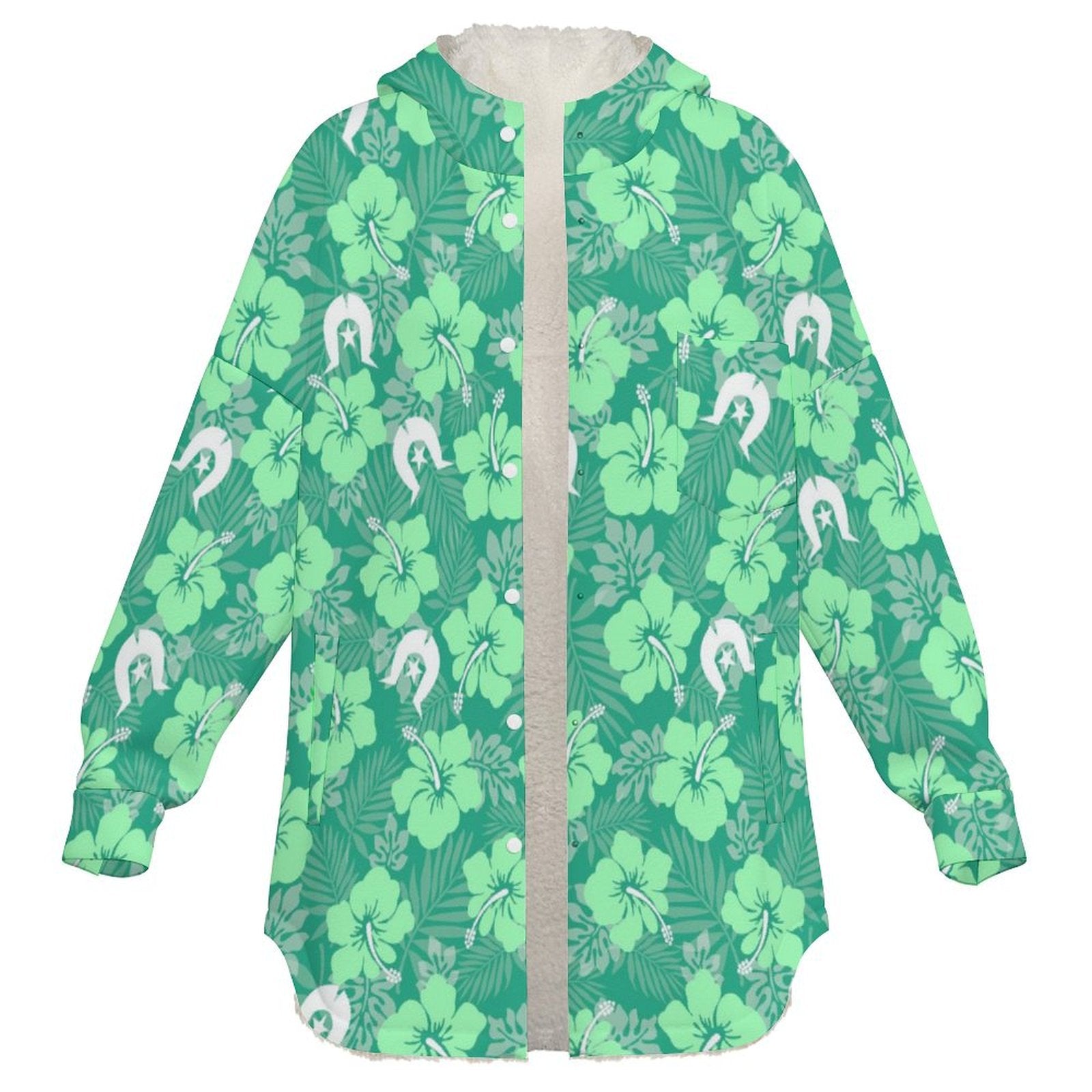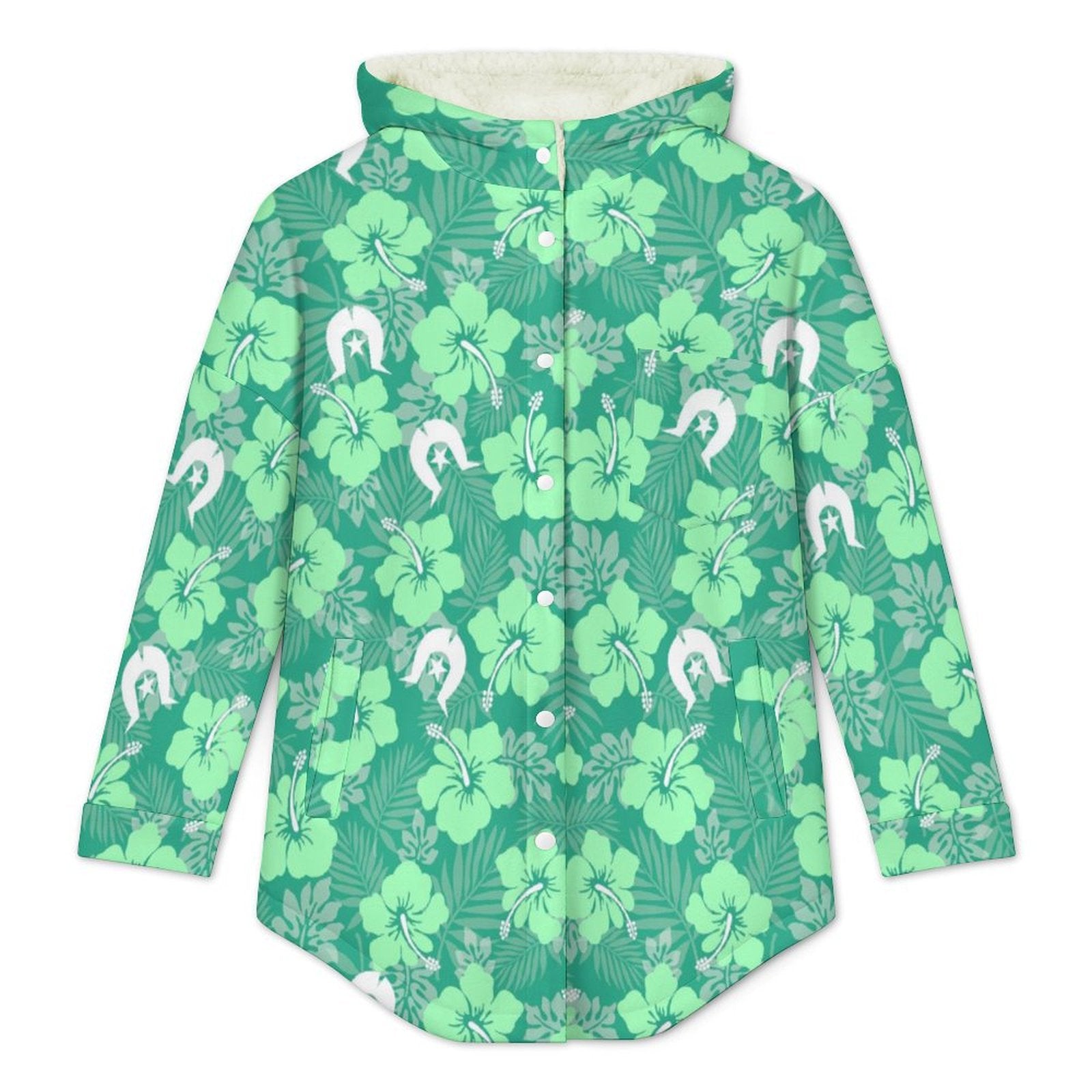 Hibiscus flowers with Dhari (Royal mint) on Women's Full Snap Fleece Jacket