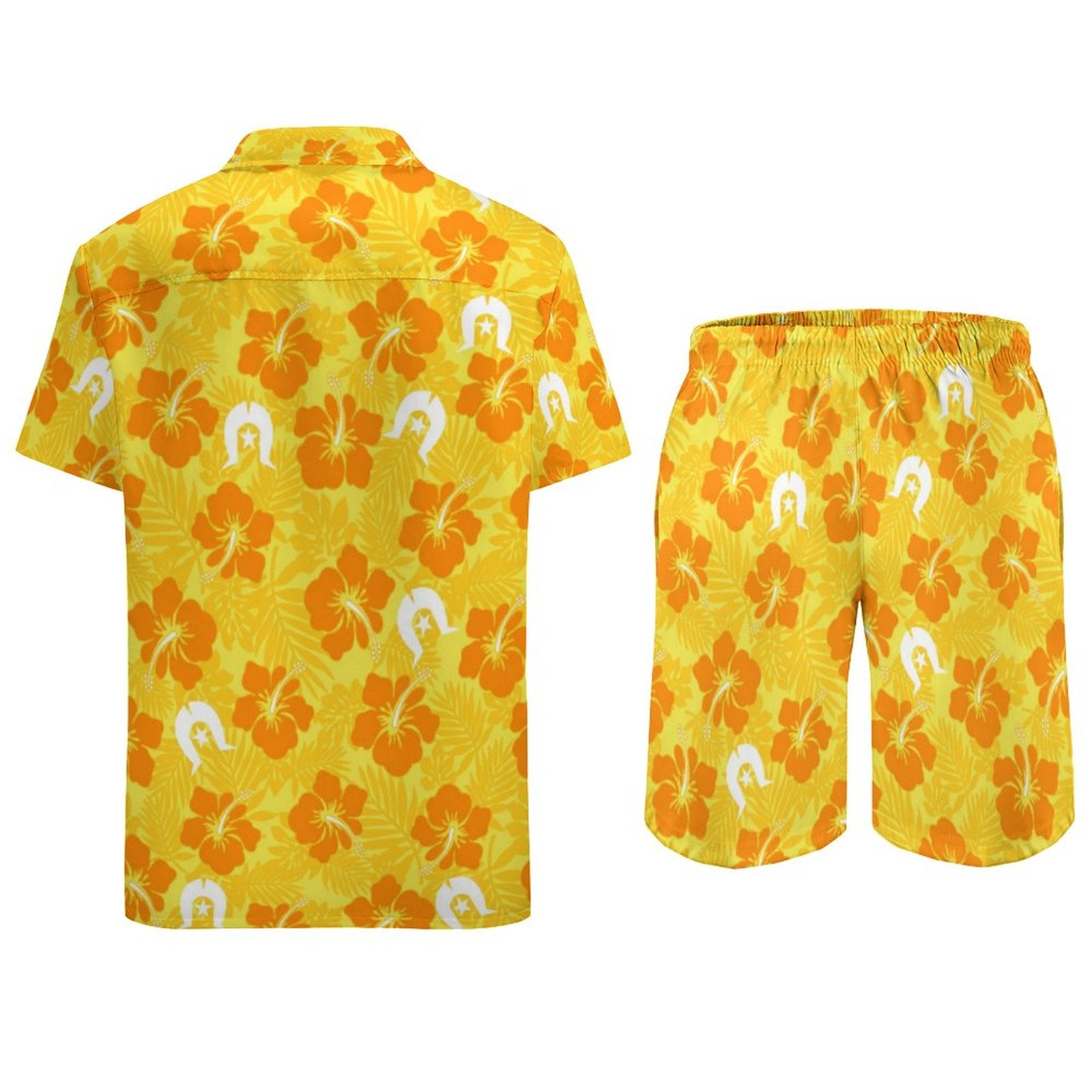Hibiscus flowers with Dhari (Gold) on Hawaiian Suits for Men