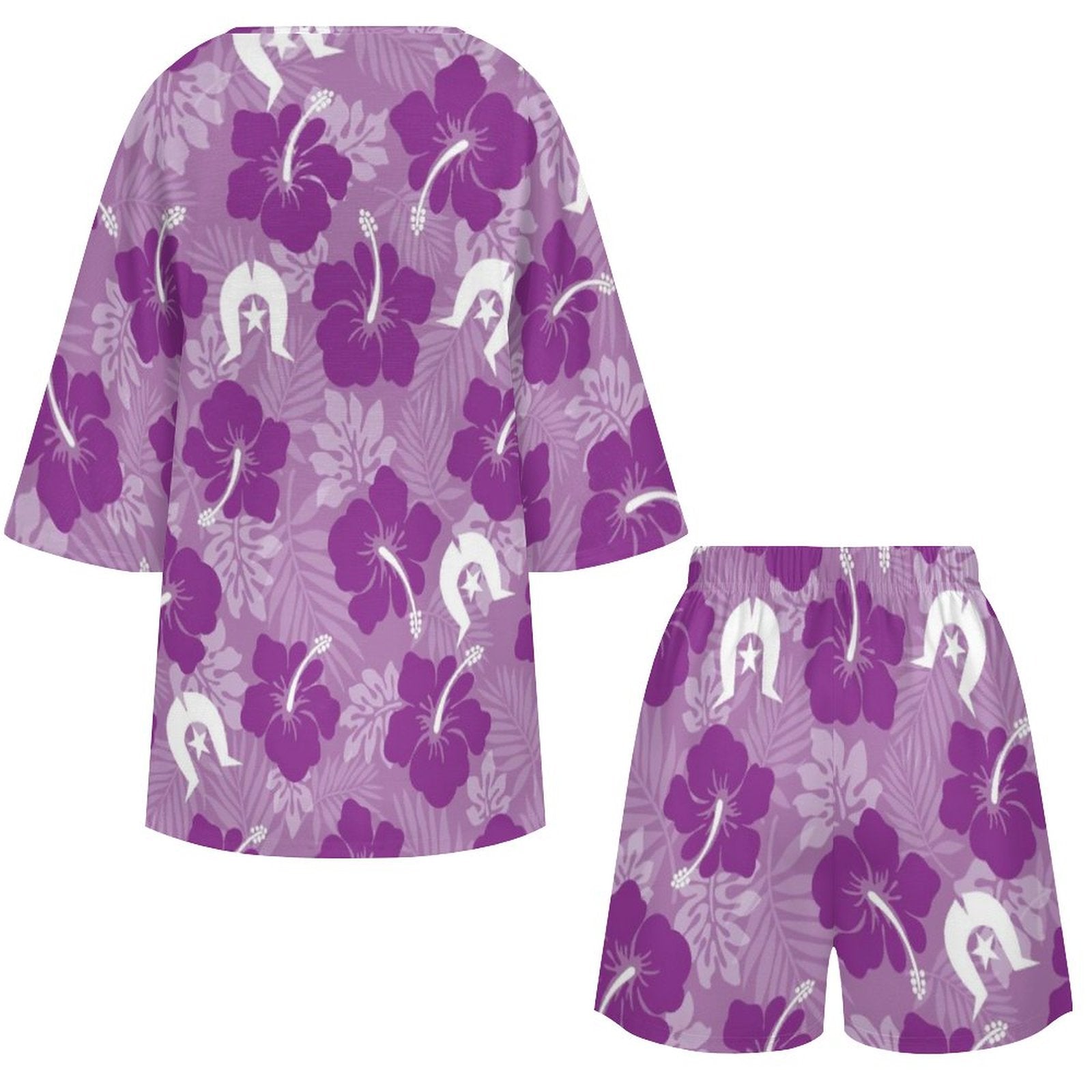 Hibiscus flowers with Dhari (Royal purple) on Mediterranean Style V-Neck Suit