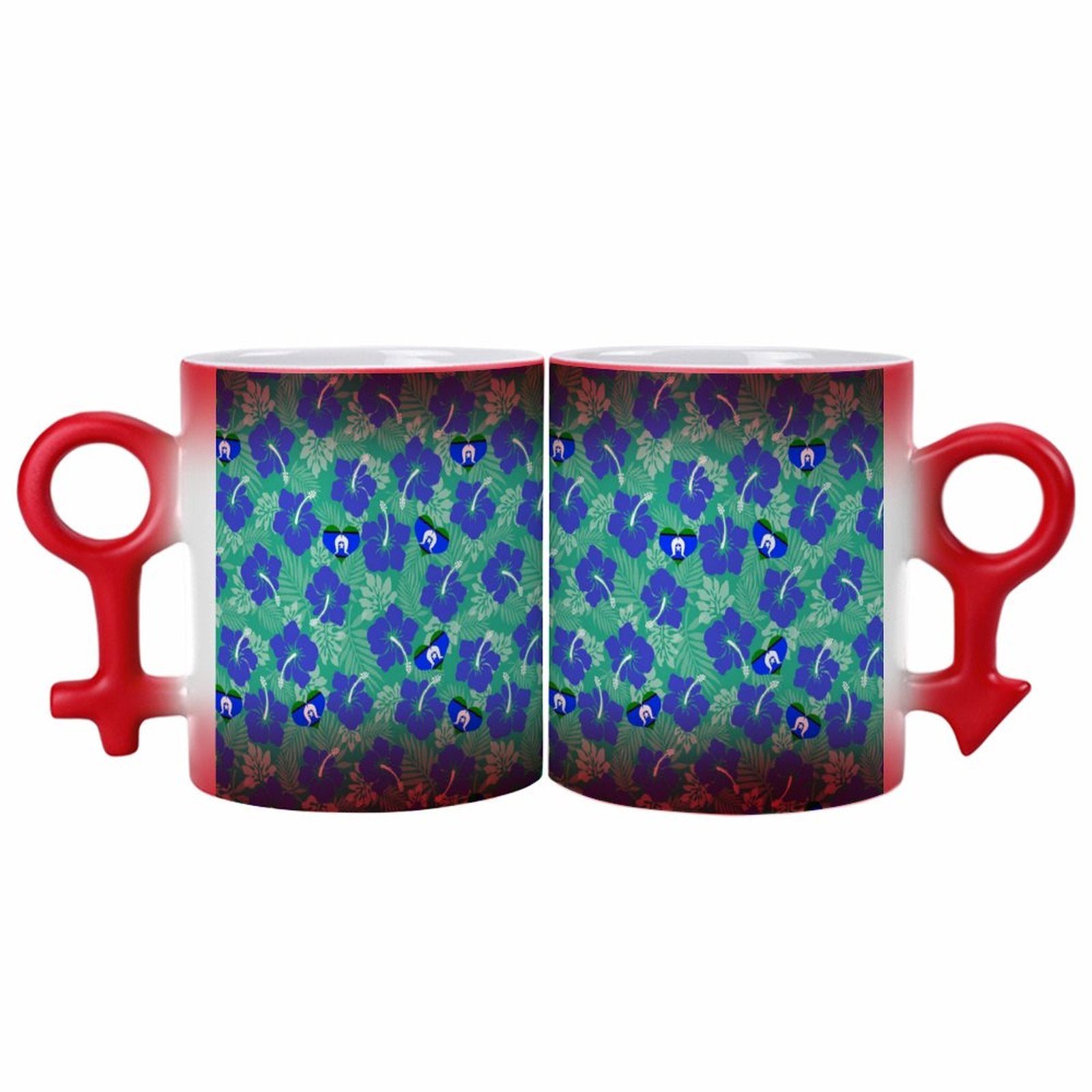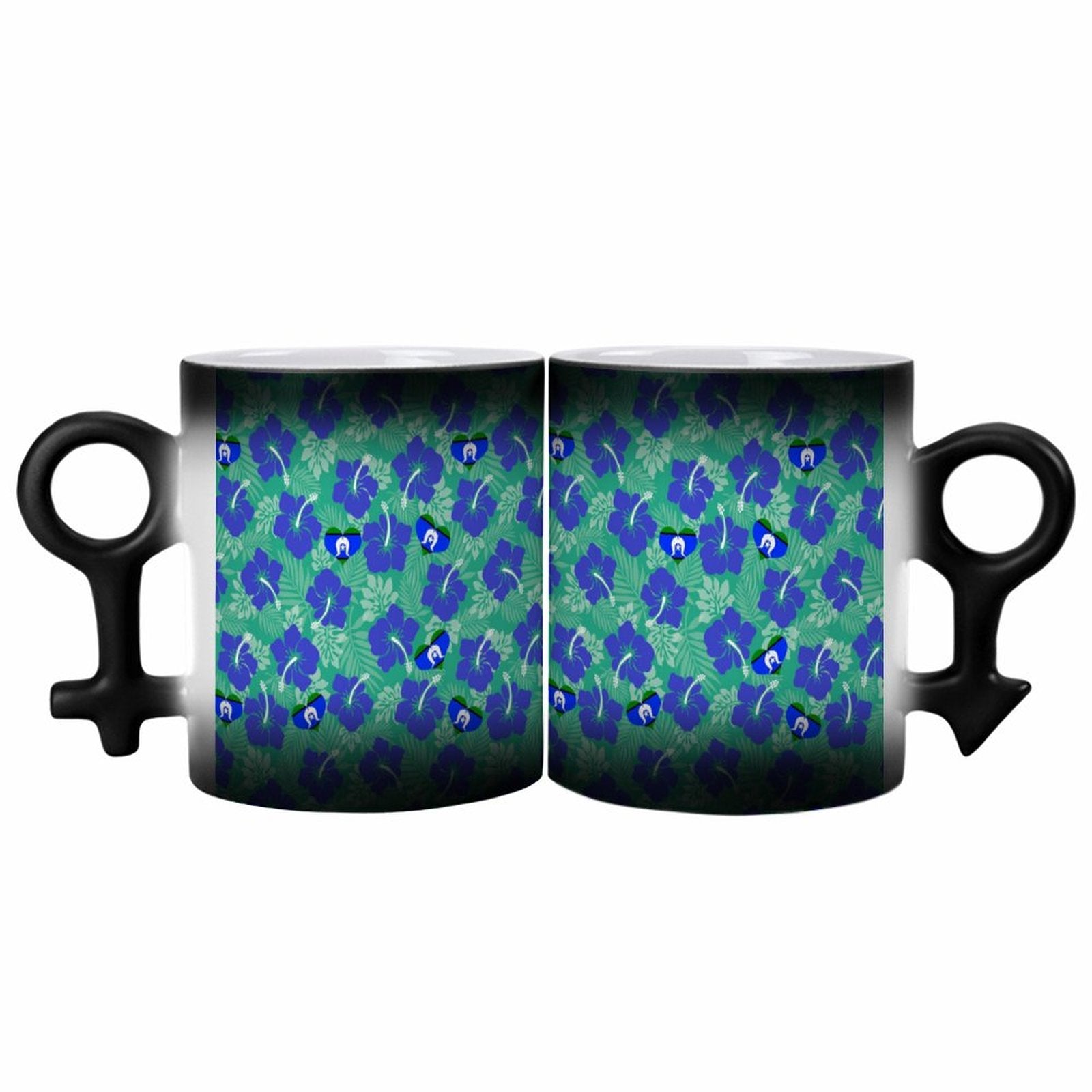 Hibiscus flowers with Torres Strait Heart Flag on Couple Symbol Color-Changing Mug