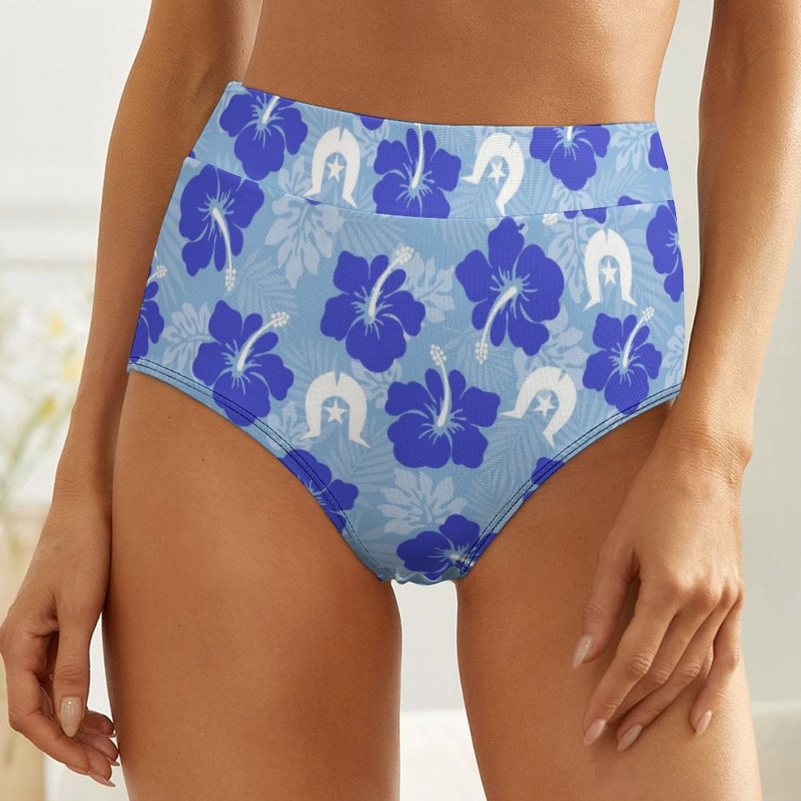 Hibiscus flowers with White Dhari (Sky blue) on Women's High-Rise Panties