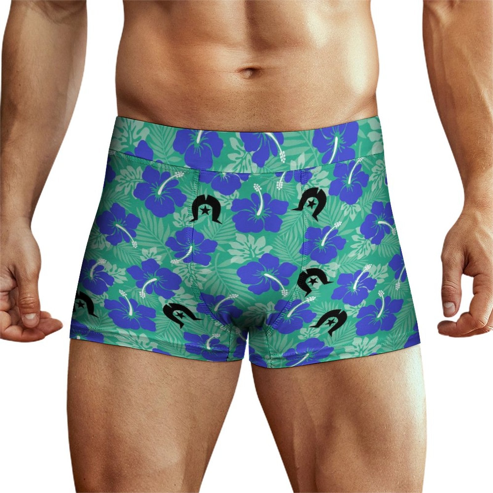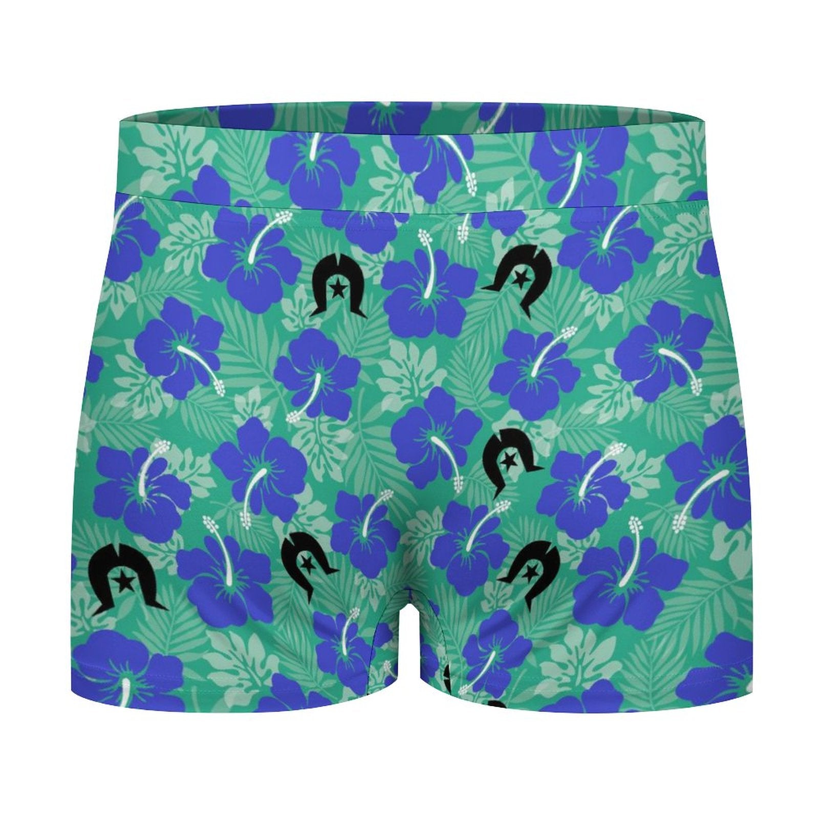 Royal Blue Hibiscus flowers with Black Dhari on Milk Fiber Boxer Shorts for Men
