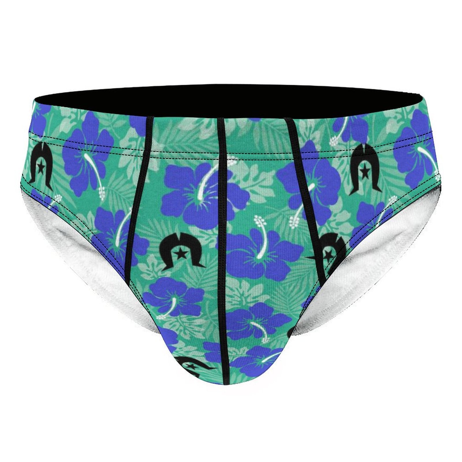 Royal Blue Hibiscus flowers with Black Dhari on Milk Silk Men's Briefs