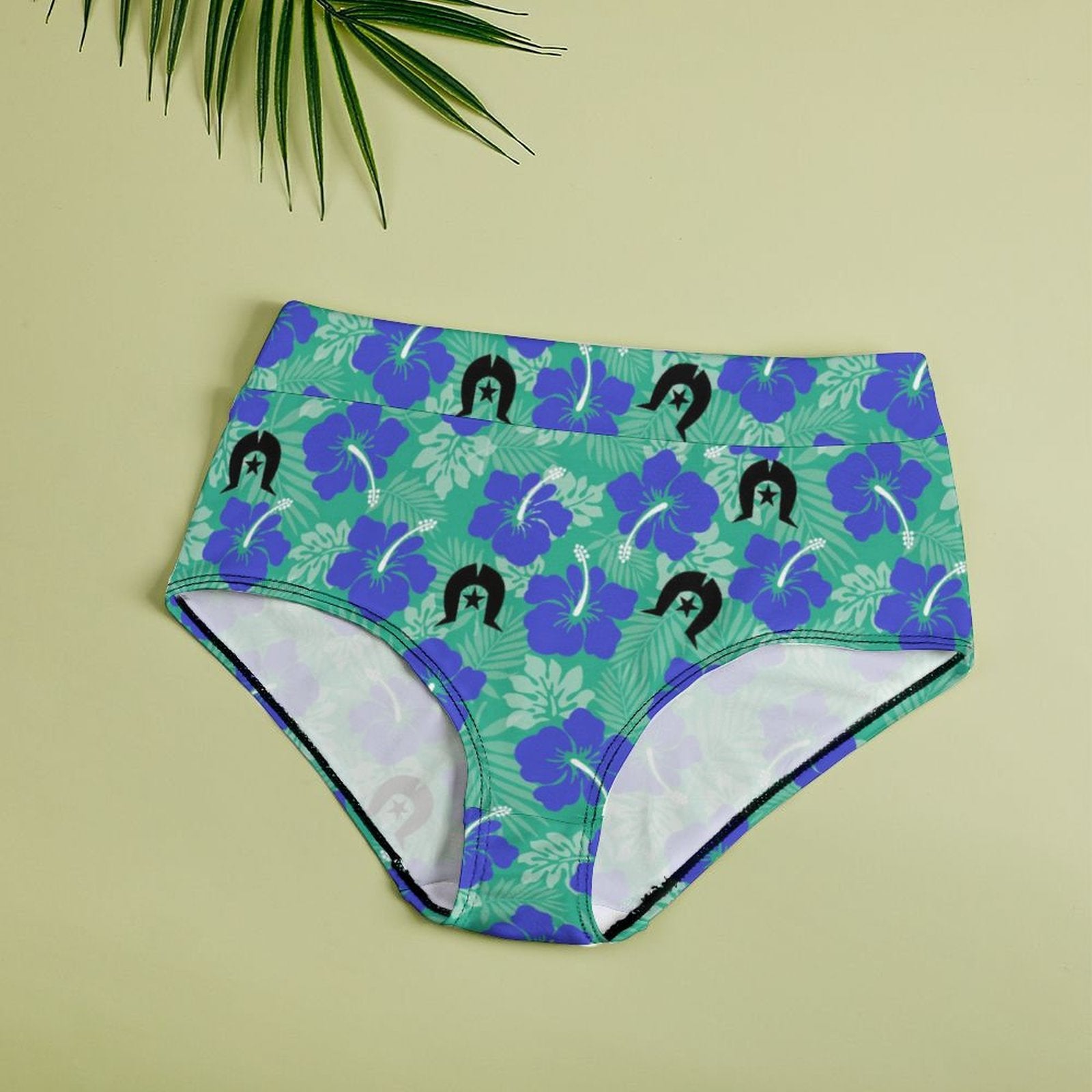 Royal Blue Hibiscus flowers with Black Dhari on Women's High-Rise Panties