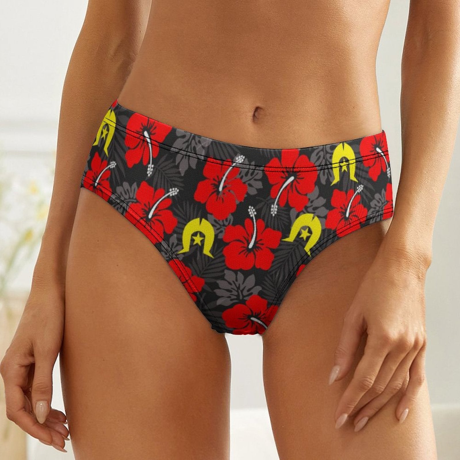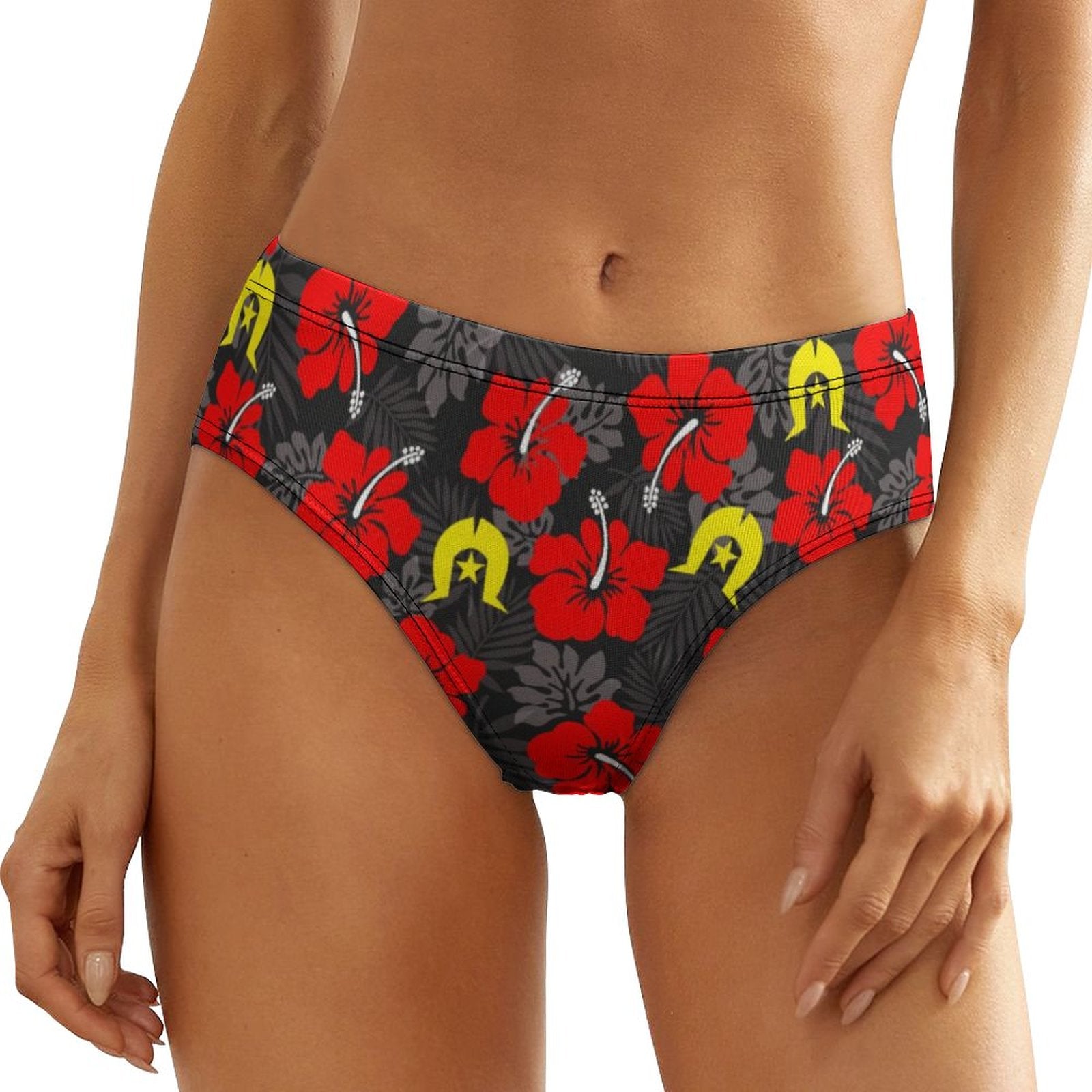 Royal Red Hibiscus with Yellow Dhari on Women's Low-Rise Panties