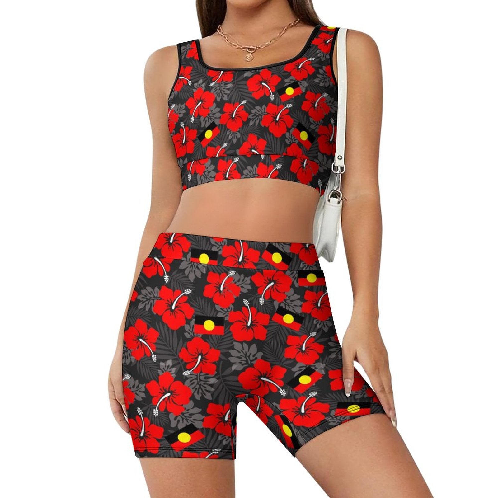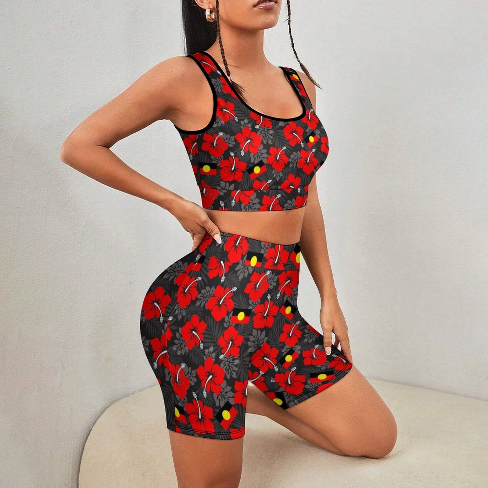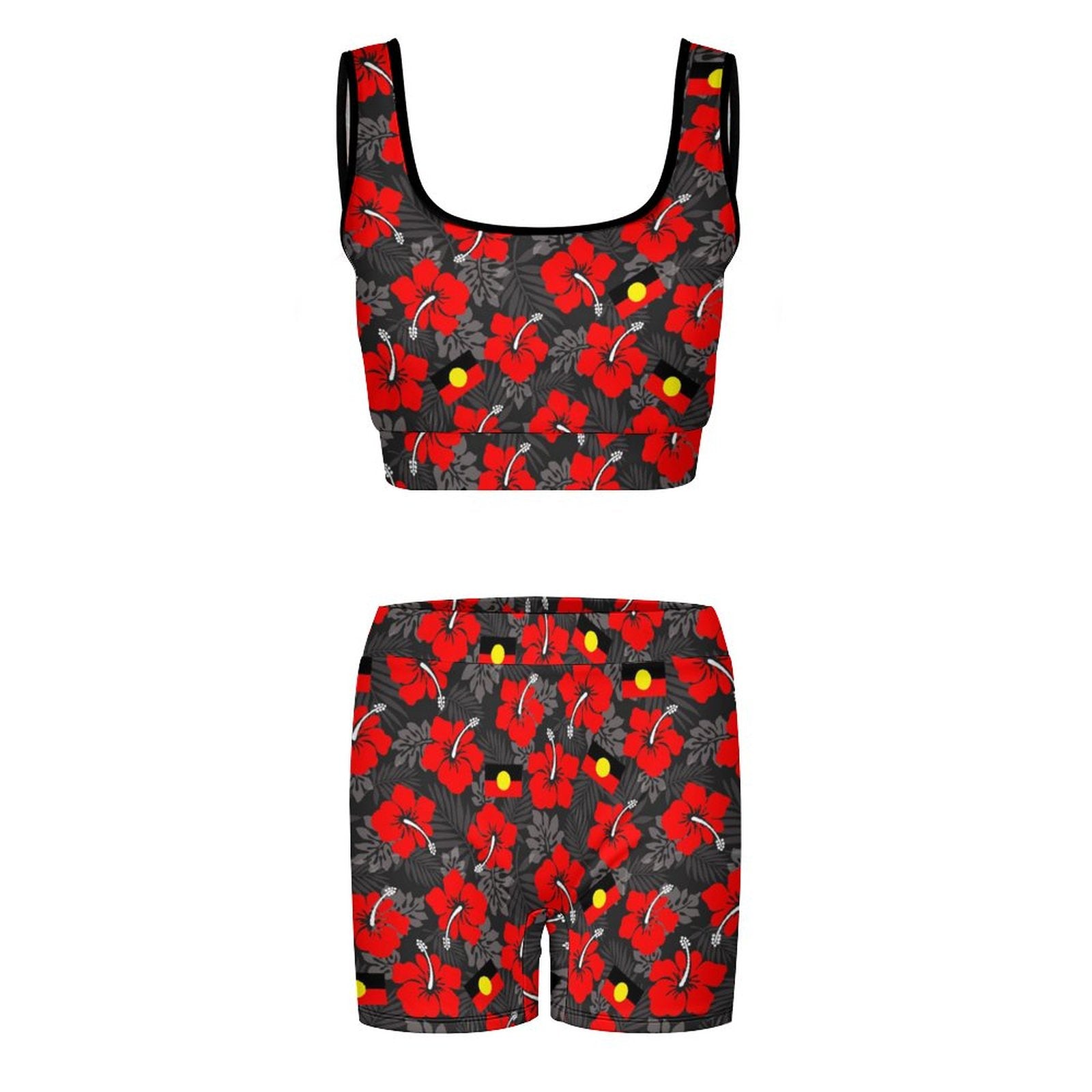 Royal Red Hibiscus with Aboriginal Flag on Yoga Workout Outfits