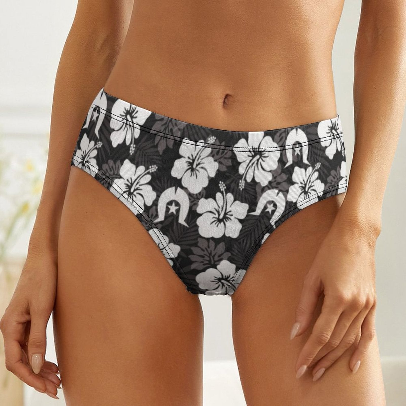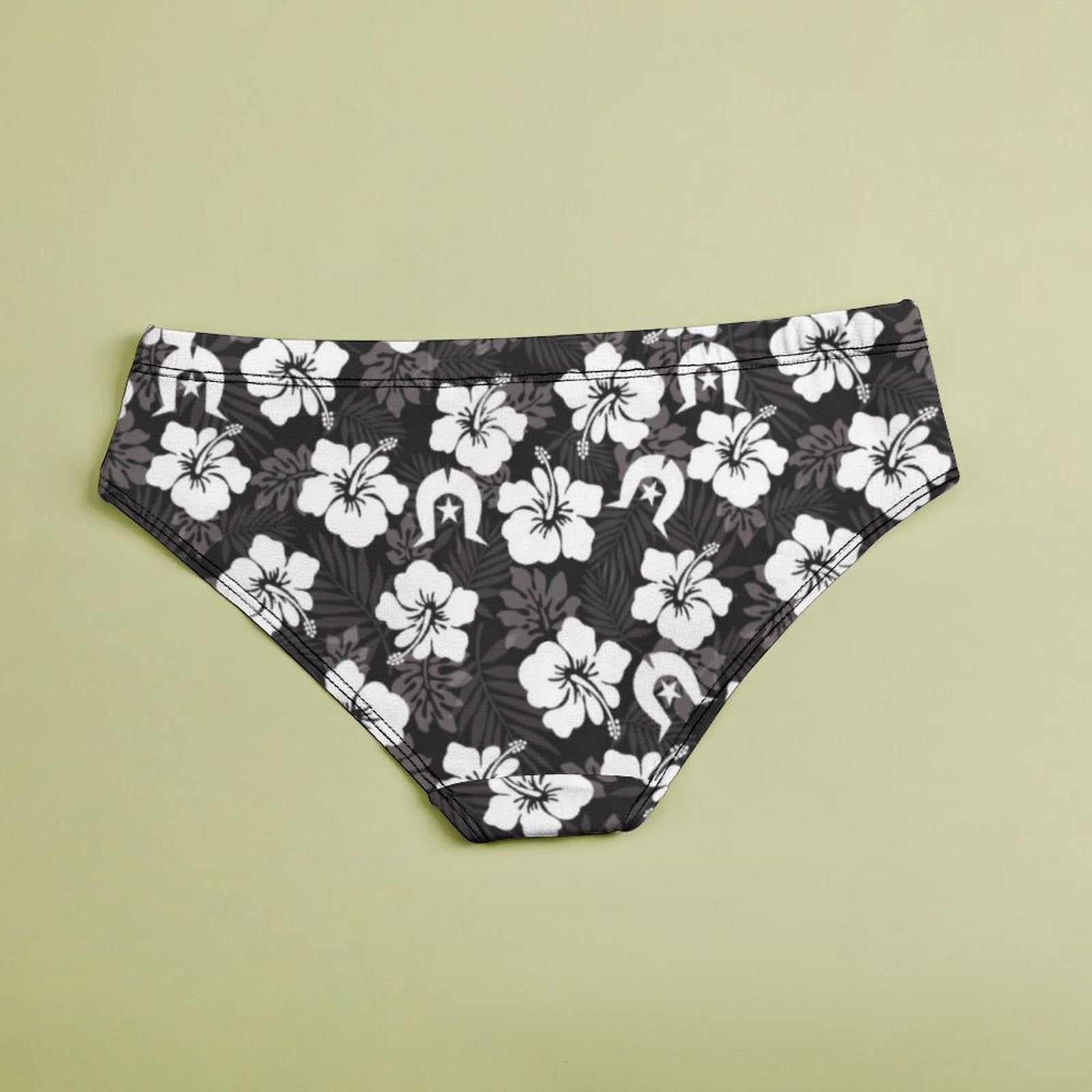 White Hibiscus and Dhari (Black) on Women's Low-Rise Panties