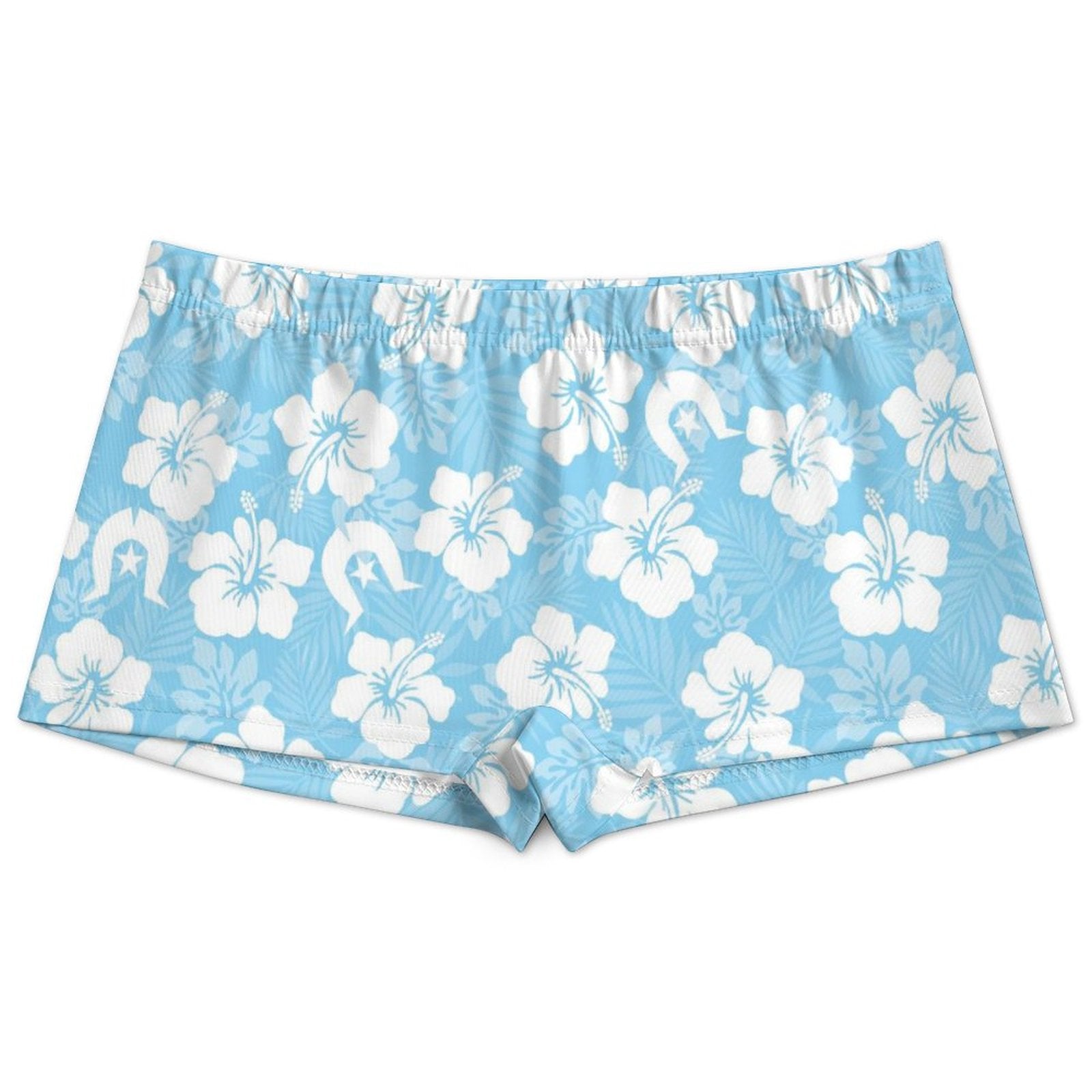 White hibiscus and Dhari (Blue) on 180gsm Women's Boxer Briefs