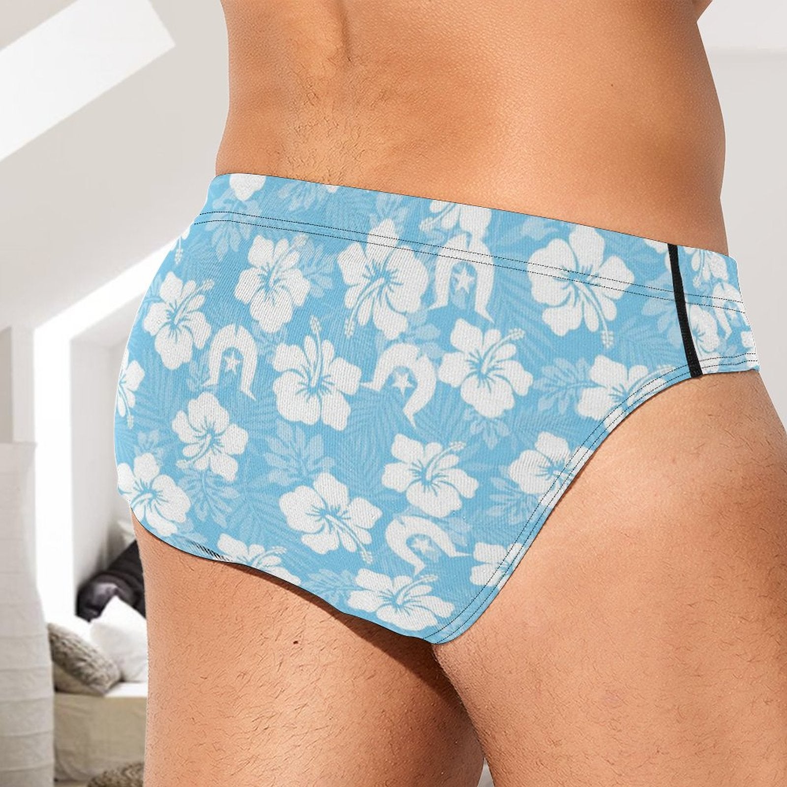 White hibiscus and Dhari (Blue) on Milk Silk Men's Briefs
