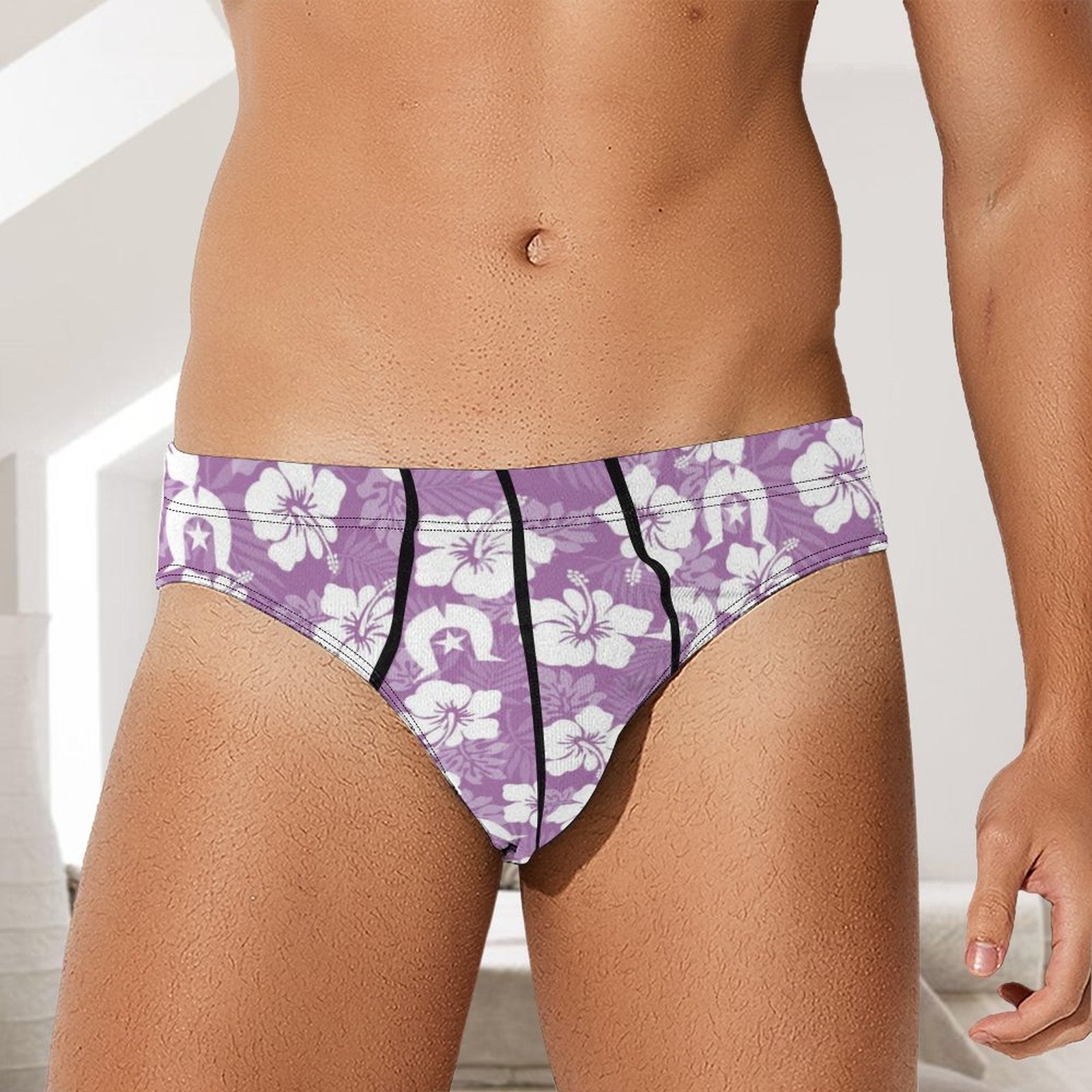 White Hibiscus and Dhari (Purple) on Milk Silk Men's Briefs